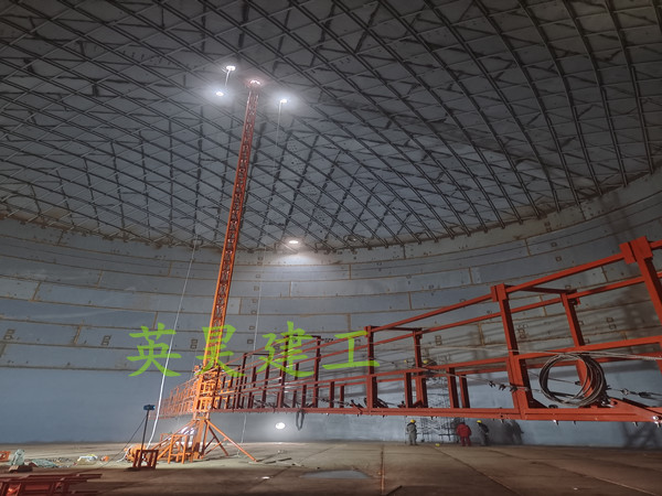 储罐内壁升降平台主要有两个方面组成,分别是立柱与大臂,成型结构为十字架结构,工作原理是通过大臂围绕立柱进行旋转作业,升降也是通过立柱进行上下移动,这样的结构形式是非常符合罐内施工所需,所以说,储罐内壁升降平台是专门为储罐内壁施工而研发的,这样的结构形式与施工方式是脚手架完全做不到的,该设备还可以对罐顶进行施工,可以说该设备可对罐内进行无死角施工,是非常理想的选择。